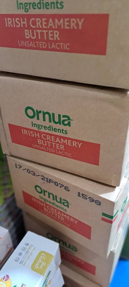 کره ایرلندی Ornua در بسته‌بندی ۲۵ کیلویی یک انتخاب حرفه‌ای برای کارخانه‌ها، قنادی‌ها، نانوایی‌ها و رستوران‌ها است. کیفیت بالا، چربی متعادل و طعم فوق‌العاده این کره باعث شده که در صنایع غذایی سراسر جهان محبوب باشد. اگر به دنبال یک کره طبیعی، خالص و باکیفیت برای کسب‌وکار خود هستید، کره ایرلندی Ornua بهترین گزینه است.